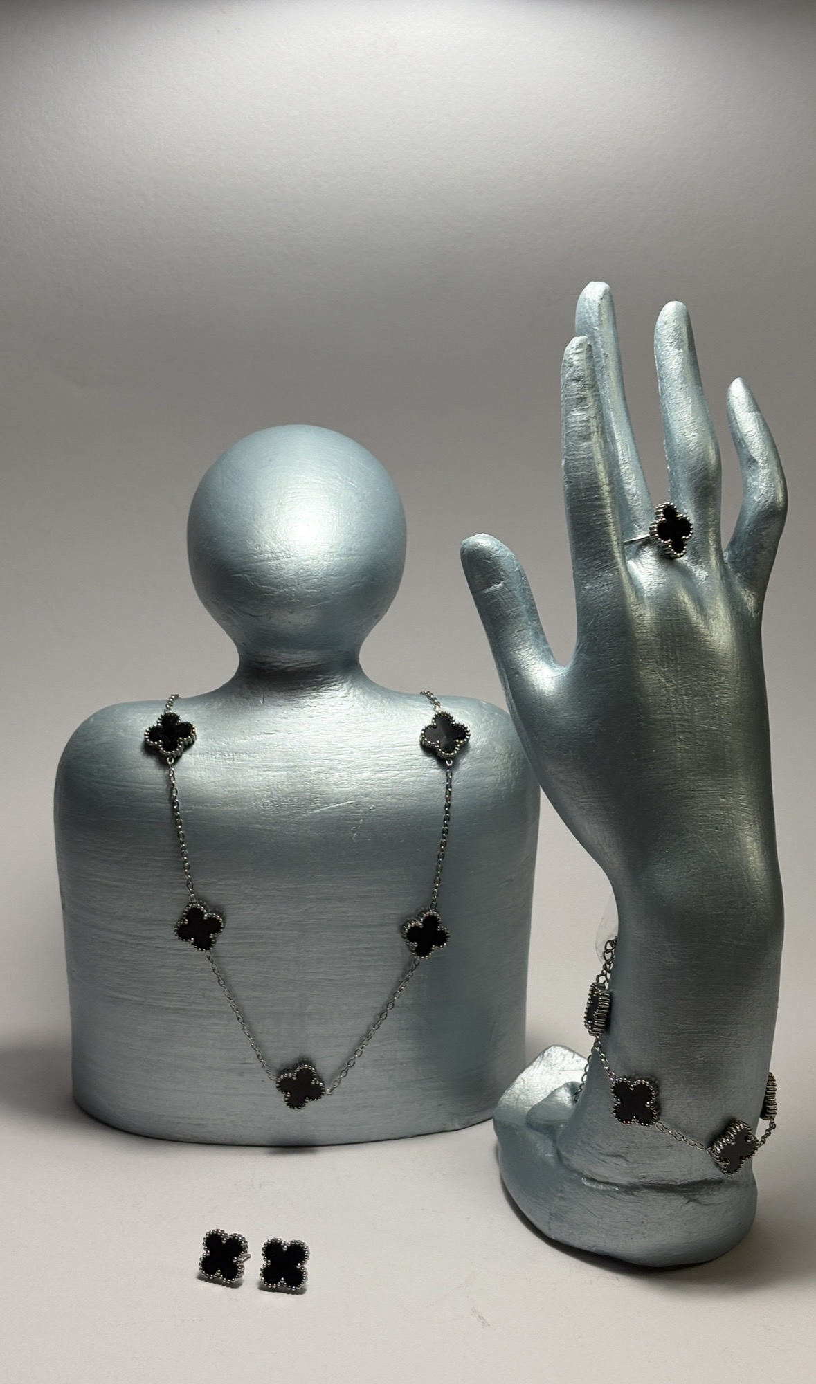 - ست گردنبند و گوشواره آویز ورساچه فیک مشکی طلایی