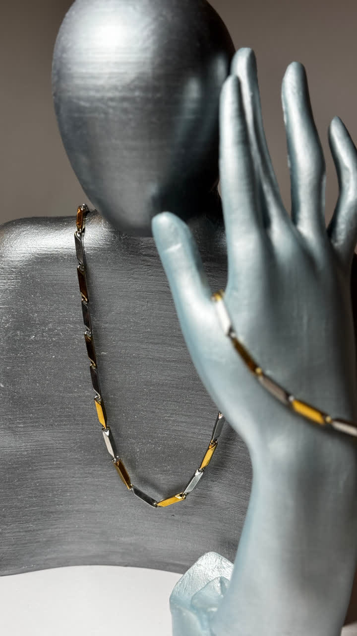 ست دستبند و گردنبند کبریتی دو رنگ