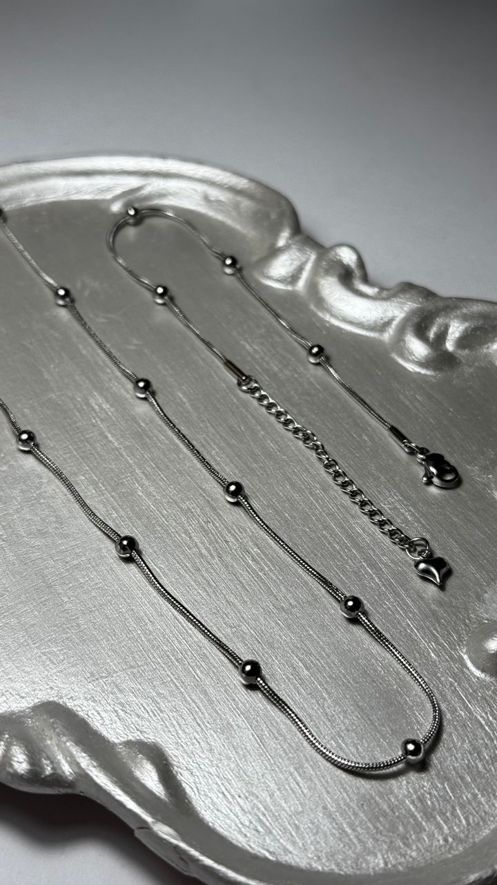 دستبند و گردنبند توپی ماری نقره ای